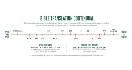 It all comes down to what we call the Bible translation continuum. To start with, it's important to know every translation we read is just that, a translation. It is not original Hebrew or Greek, and it had to be translated to English for us to read and understand.
